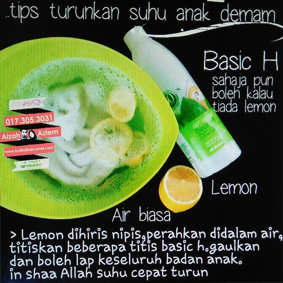 Sejak kenal Basic H ni , aizah memang guna basic h je dah untuk sponging anak-anak aizah ketika demam. senang , mudah dan tak de bau yang tidak senang . memang wajib stok basic h ada dirumah , kadang bawak kemana sahaja kalau travel . Alhamdulillah suhu anak cepat turun kalau sponging dengan air basic h ni . ibu-ibu wajib ada ni .