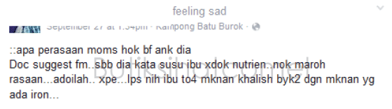 Bukti Salah seorang ibu yang mengalami masalah ini, sehingga doktor mencadangkan susu formula.