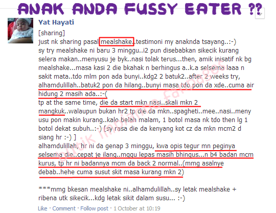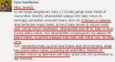 Jom ibu-ibu yang belum dapatkan meal shake, dapatkan untuk anak-anak kita demi pastikan anak-anak mendapat nutrisi yang lengkap untuk membantu tumbesaran dengan sempurna. In Shaa Allah .