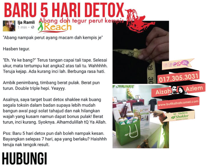 8) Kadang kita tak terbuat detox semulajadikan ? hari-hari pun ambil makanan dan minuman yang boleh mendatangkan toksin, jadi aizah cadangkan ambil set detox shaklee yang mudah dan selamat . Set detox shaklee sesuai di ambil semasa berpuasa malah badan akan rasa ringan , membuang pun lancar .