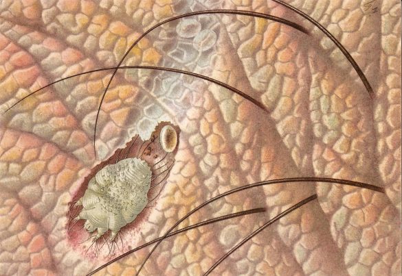 Mempunyai 8 kaki yang panjang dan berbadan bulat , kutu berukuran 0.4 mm , Kutu Sarcoptes Scabiei betika akan mengorek masuk ke dalam kulit dan bertelur seterusnya mati , Telur-telur akan menetas menjadi kutu dalam 30 hari.