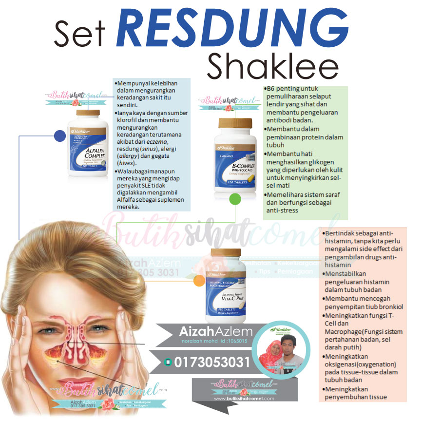 Pada mereka yang mengalami masalah seperti saya anda boleh mencuba Set Resdung Shaklee ini kerana ia sangat berkesan. Saya yakin ia juga berkesan pada anda.
