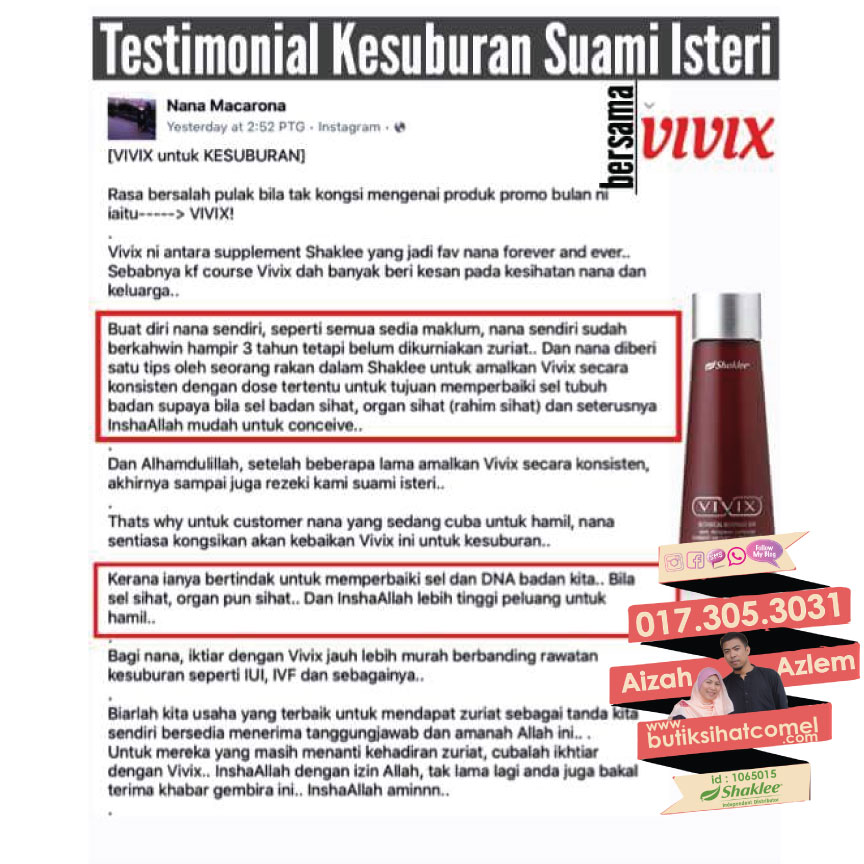 1) Vivix kerana vivix membantu memulihkan kesuburan secara menyeluruh sehingga ke dalam sel
