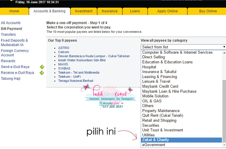 2) Aizah sertakan cara pembayaran zakat dan fidyah melalui maybank2u . sangat mudah .