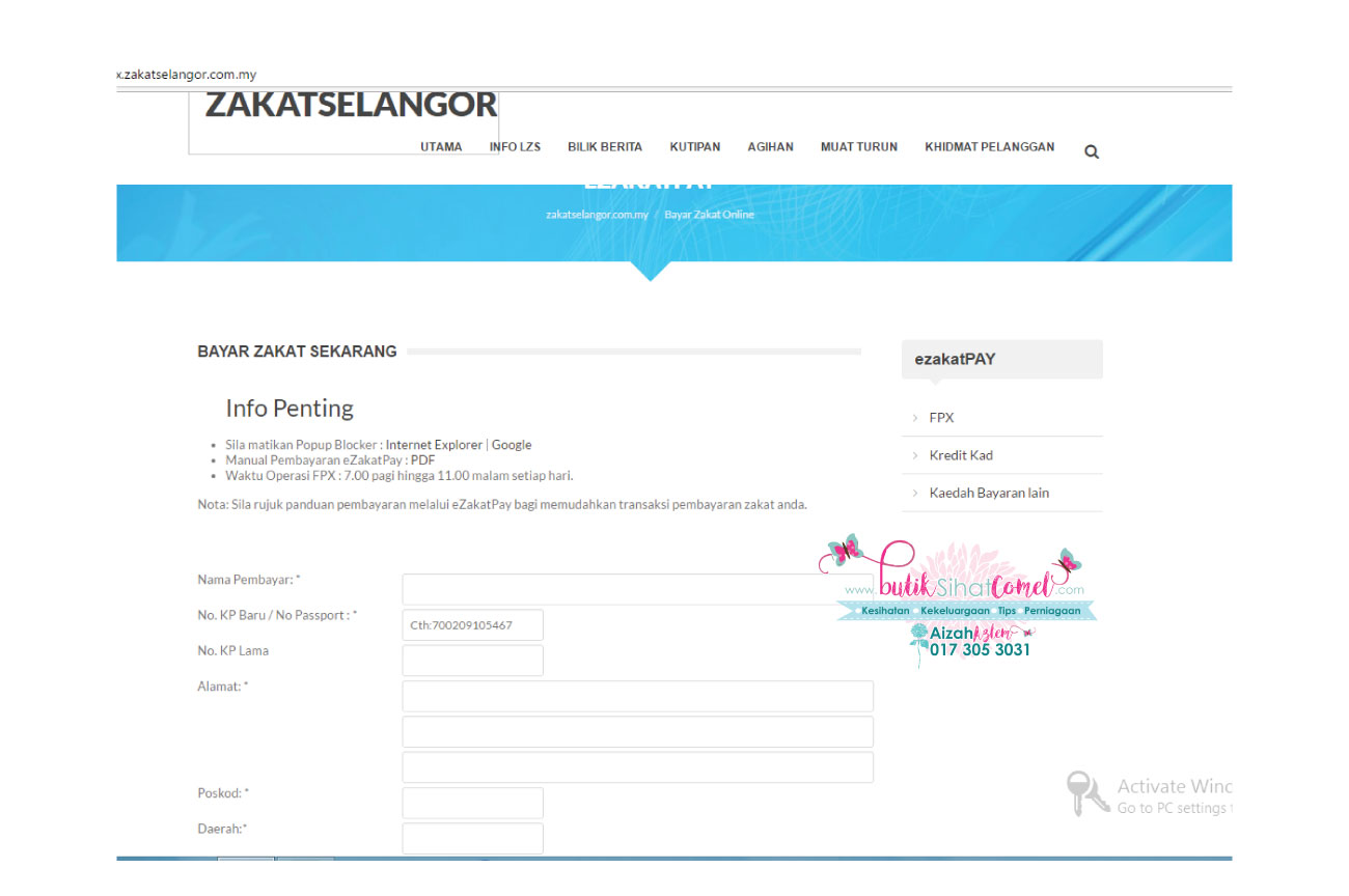 Pembayaran zakat online terus dari website zakat pun boleh iaitu