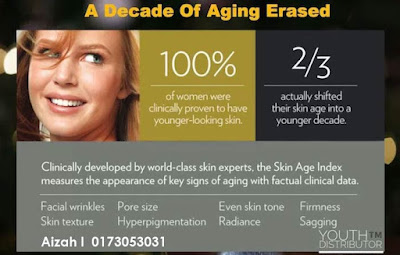 Youth Shaklee sangat berkesan dan telah dibuktikan dengan kajian klinikal. Ujian klinikal ini dicipta oleh world-class skin expert dengan gunakan skin age index, iaitu mengkaji kemungkinan kehadiaran tanda penuaan melalui data klinikal. Skin age index ini boleh mengukur sehingga kedalaman dan berapa panjang kedut-kedut dimuka kita. waaa details sungguh kan.