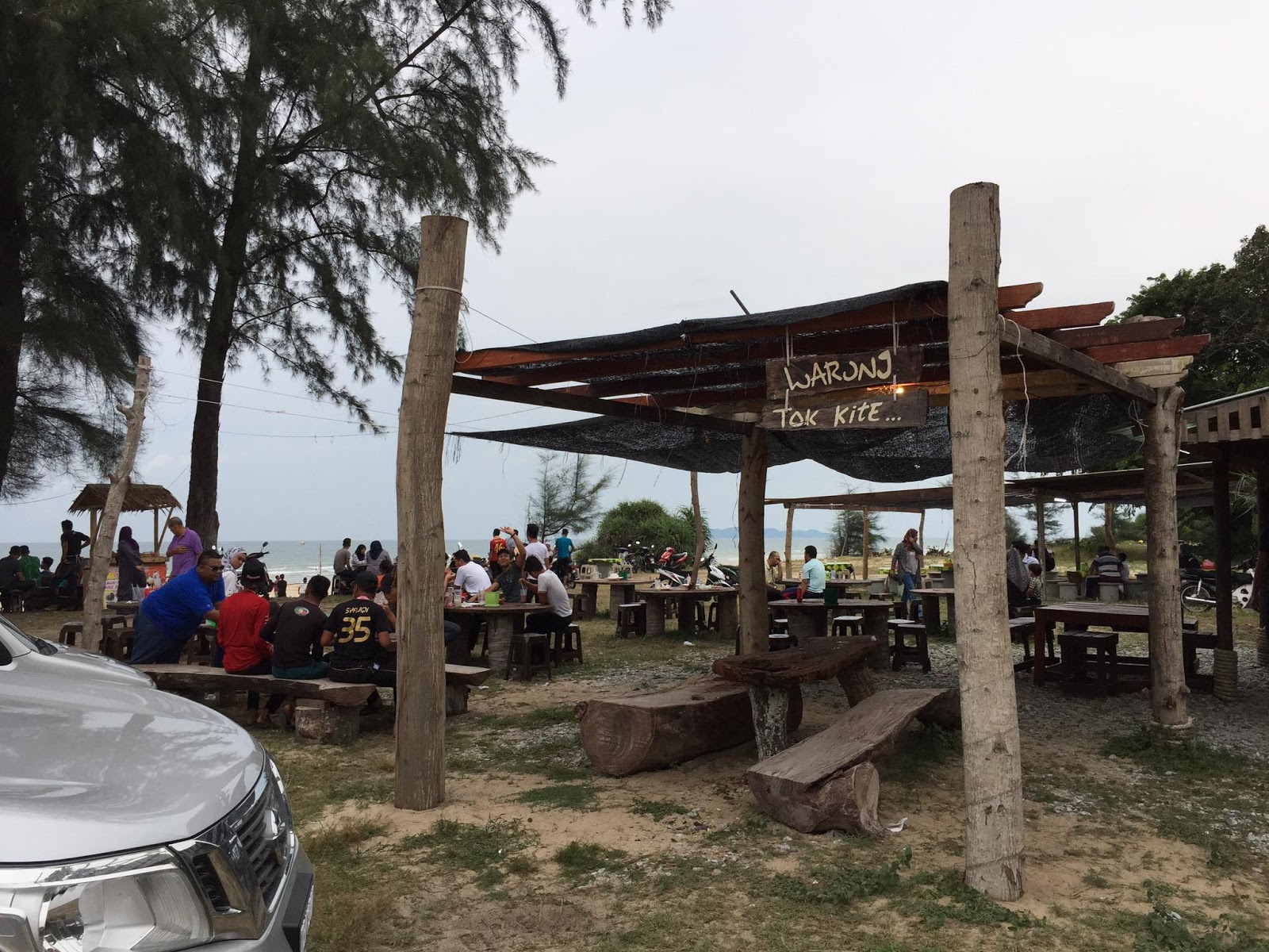 dan dipersisiran pantai pula kan mereka dirikan warong pata tok kita . jadi sambil-sambil menikmati pemandangan yang tenang dan damai bolehla kita minum-minum dan makan at warong pata tok kita.