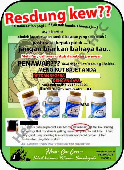 saya cadangkan vitamin terbaik dari shaklee , In Shaa Allah . jom dapatkan mengikut bajet anda . Set Resdung Shaklee