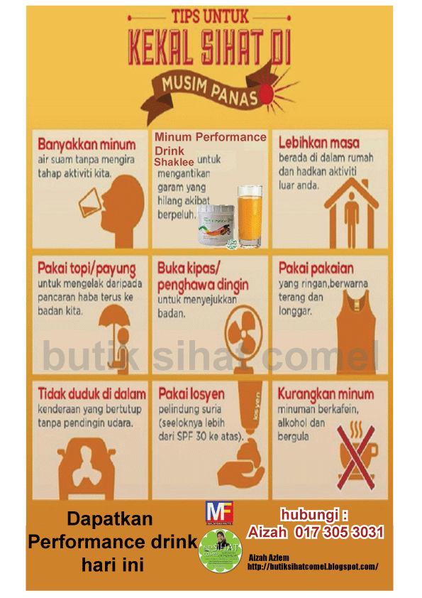 * kita boleh ambil minuman isotonik untuk gantikan garam dan mineral yang hilang semasa berpeluh. Boleh minum