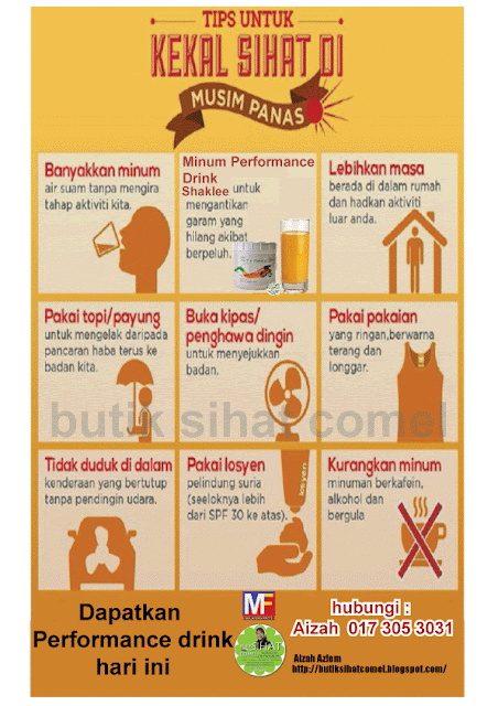 * Untuk mengelak mengawal 40 peratus haba pada bahagian kepala boleh juga kita Pakai topi atau payung